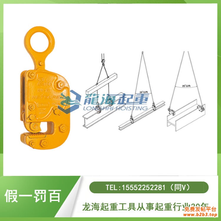 龙海起重工具有限公司自2011年6月开始销售日本NETSUREN三木品牌产品,产品拥有ISO 9001认证、产品检测报告以及品质保证证书,NETSUREN HV-K横吊钢板钳具有横竖双向吊装功能,可与水平吊钳组合使用,五倍以上安全系数,使用寿命长达7-8年,保证原装进口、假一罚百!